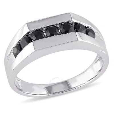 Men's Channel Set Black Sapphire Ring In Sterling Silver In White