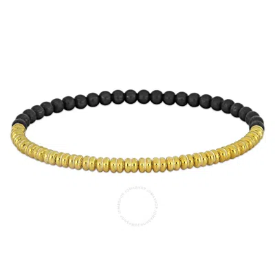 4mm Black Titanium Spring Bead Elastic Yellow Plated Sterling Silver Bracelet - 7.25 In