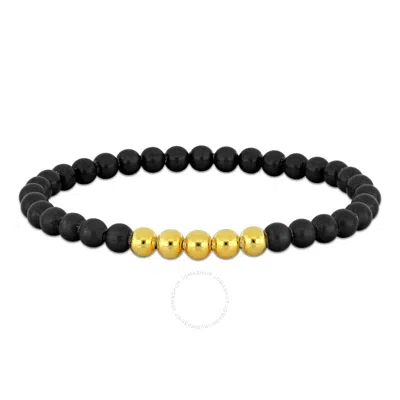 6mm Black Titanium Spring Bead Elastic Yellow Plated Sterling Silver Bracelet - 9 In