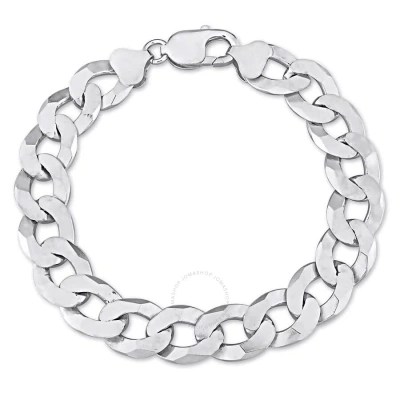 12.5mm Flat Curb Chain Bracelet In Sterling Silver In White