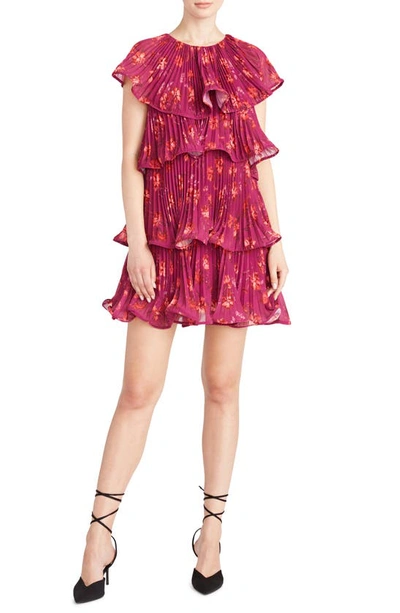 Breeta Pleated Tiered Minidress In Bougainvillea Mono Floral