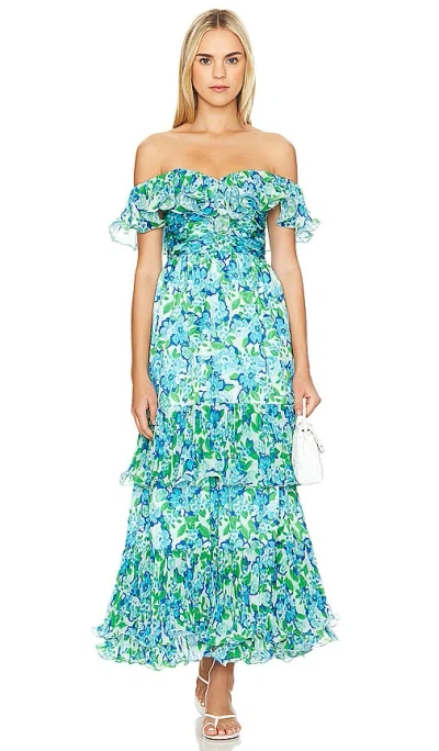 Pia Pleated Off The Shoulder Maxi Dress In Garden Blue