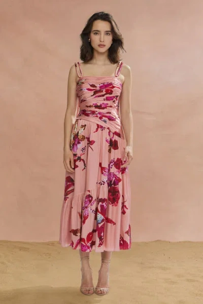 Allegra Floral Knit Midi Dress In Pink Pearl
