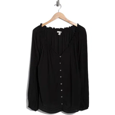 Too Good Long Sleeve Woven Button-up Shirt In Black