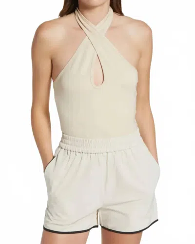 Crisscross Halter Neck Knit Top In Beige In Neutral