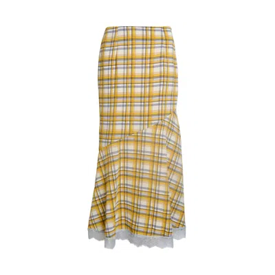 Women's Sunnie Yellow Plaid Asymetric Lace Trim Skirt