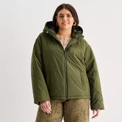 Womens Plus Hooded Midweight Puffer Jacket In Green