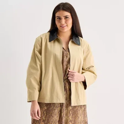 Womens Plus Denim Midweight Shirt Jacket In Brown