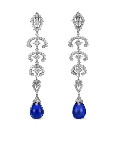 18k White Gold Love And Pain Kashmir Sapphire Earrings In Blue