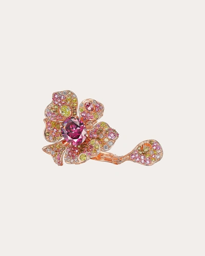 18kt Rose Gold Vermeil Tourmaline Peony Emerald And Diamond Ring In Orange