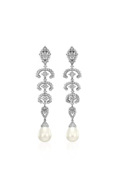 18k White Gold And Rhodium Vermeil Pearl Scallop Lace Earrings