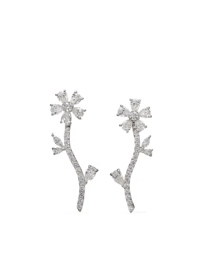 18kt White Gold Diamond Marguerite Diamond Earrings In Metallic