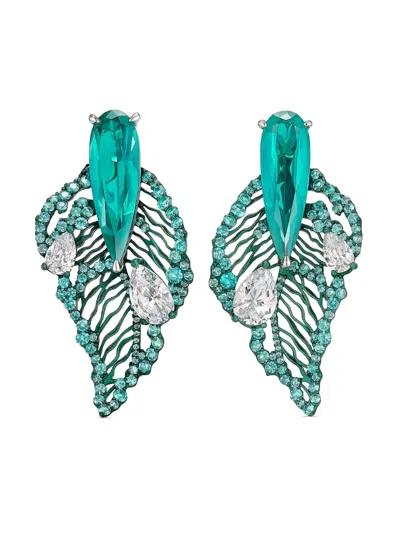 18k White Gold And Rhodium Vermeil Diamond Tropical Drop Earrings