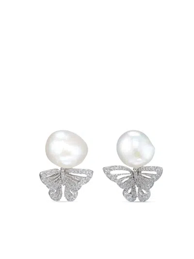 18kt White Gold Butterfly Pearl And Diamond Earrings In Metallic