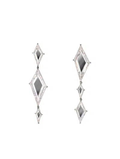 14k White Gold Trinity's Shatter Sapphire Earrings In Metallic