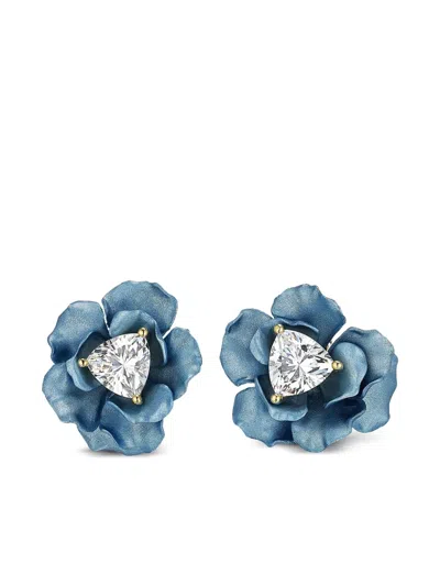 18k Yelllow Gold Blossom Multi-stone Earrings In Gray
