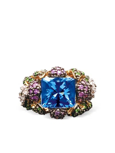 18k Yellow Gold And Rhodium Vermeil Imperial Delphinium Multi-stone Ring