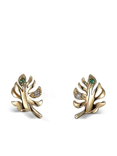 9k Yellow Gold Palm Emerald And Diamond Earrings