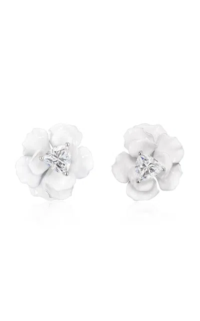 14k White Gold And Rhodium Vermeil Monochromatic Poppy Diamond Earrings