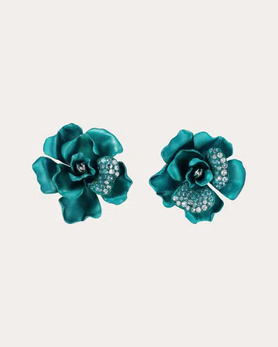 Women's Diamond & Blue Spinel Aqua Camelia Stud Earrings 14k Gold In Green