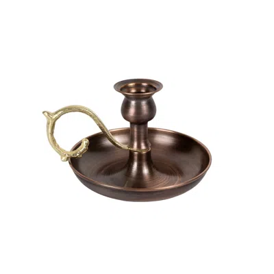Black Vintage Style Dark Copper Candle Holder With Elegant Handle
