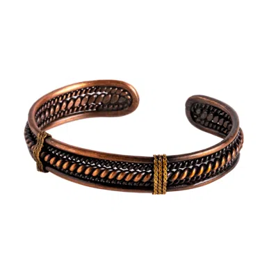 Men's Handcrafted Woven Solid Copper & Brass Cuff, Unisex Rose Gold-tone