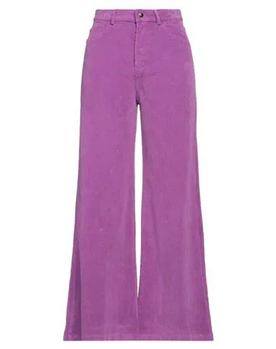.., Woman Pants Mauve Size 8 Cotton, Elastane In Purple