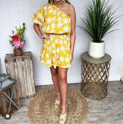 Floral One Shoulder Top And Skirt Set In Yellow Plumeria In Multi
