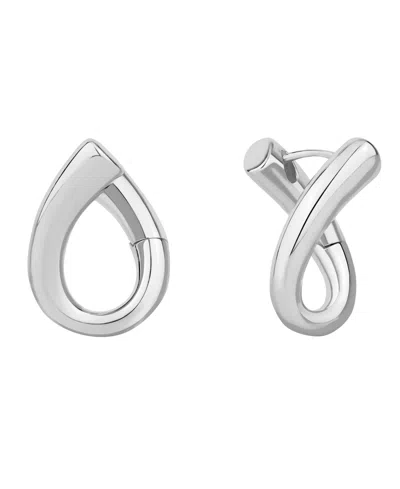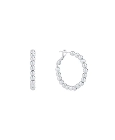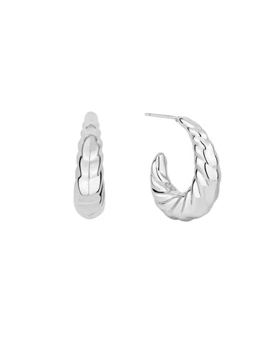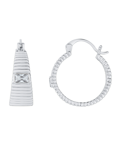 Cubic Zirconia Silver Plated Ribbed Texture Hoop Earring In Silver Plated Brass