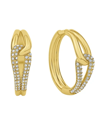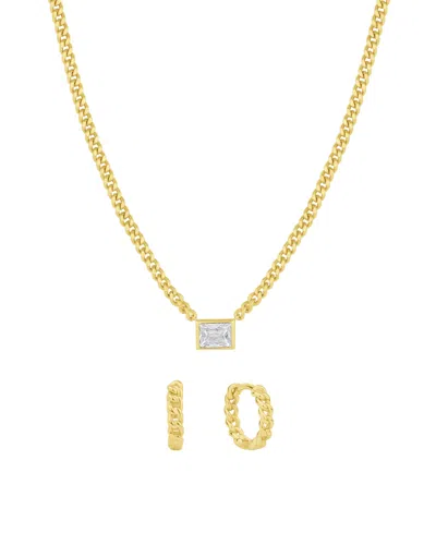 Cubic Zirconia Stud And Hoop Earring Set In Gold