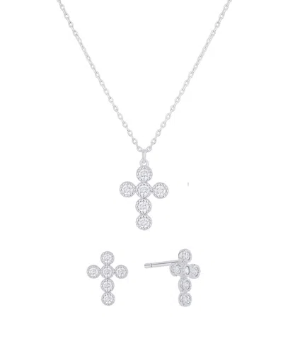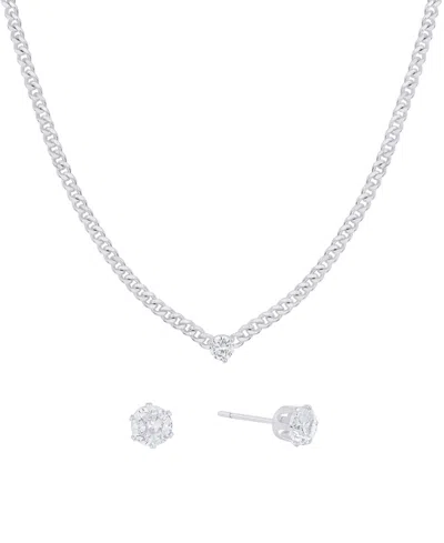 Cubic Zirconia Stud And Hoop Earring Set In Silver