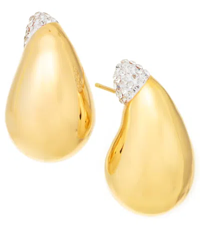 Crystal Post Hoop Earrings In Gold Plated