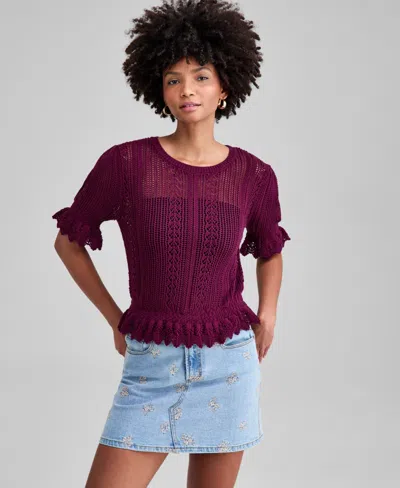 Women's Round-neck Open-knit Sweater, Macy's Exclusive In Burgundy