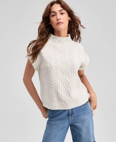 Women's Pointelle Short-sleeve Sweater, Macy's Exclusive In White