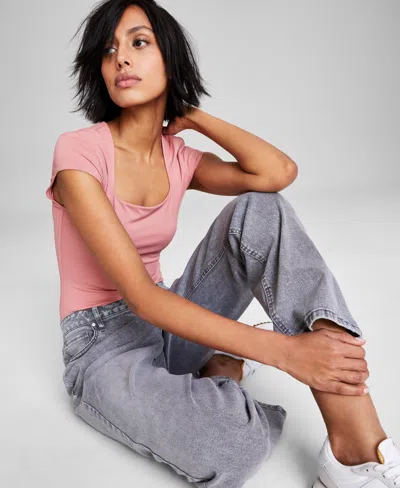 Women's Pointelle Short-sleeve Sweater, Macy's Exclusive In Pink