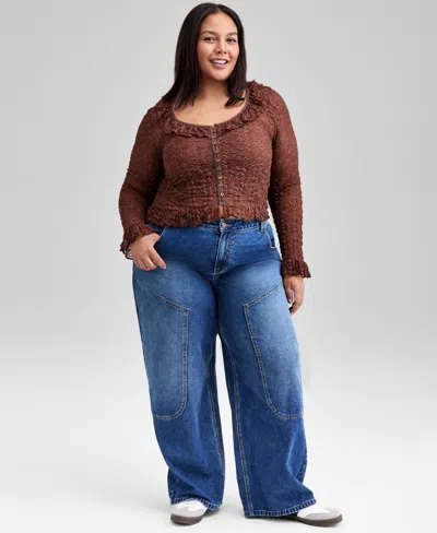 Trendy Plus High-rise Wide-leg Cutwork Jeans, Exclusively At Macy's In Blue