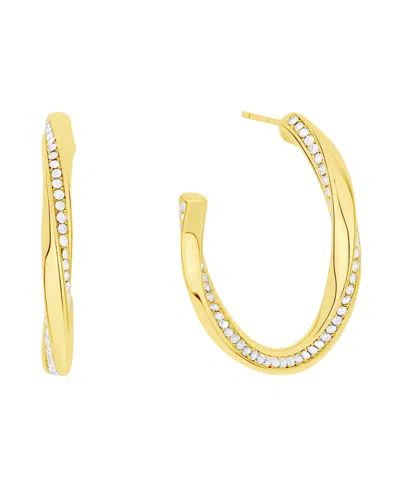 Clear Crystal Twist Hoop Earrings In Gold