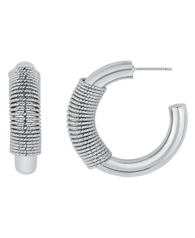 Crossover Push Back Hoop Earrings In Silver