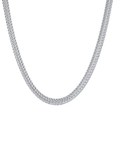 Cubic Zirconia Flat Herringbone Chain Necklace In Silver
