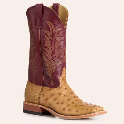 Anderson Bean Men's Umber & Sangria Full Quill Ostrich & Kidskin Wide Square Toe Cowboy Boots