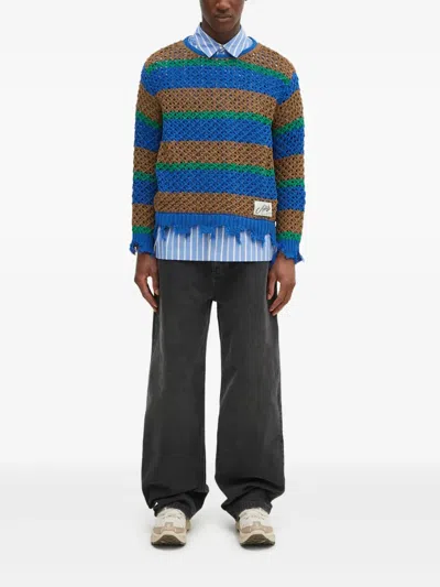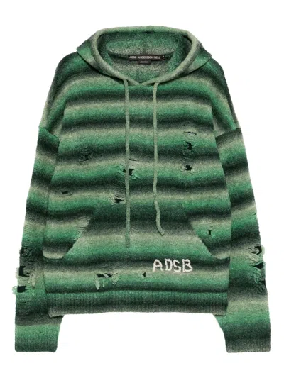 Beige Reverse Stripe Knit Hoodie In Neutral