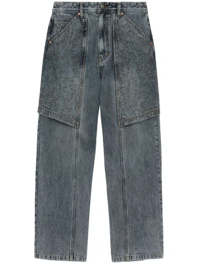 Unisex Trompe L'oeil Printed Denim Pants In Blue