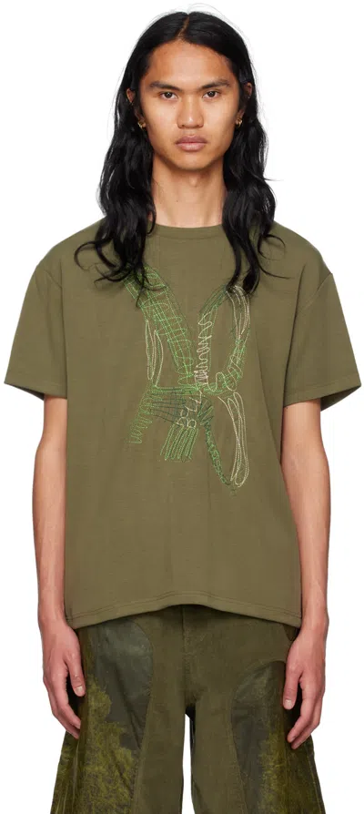 Embroidered Crewneck T-shirt In Green
