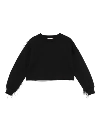 Kids' Feather-trim Organic Cotton Sweatshirt In Black