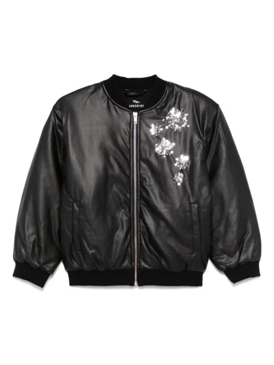 Kids' Sequin-embellished Bomber Jacket In 黑色