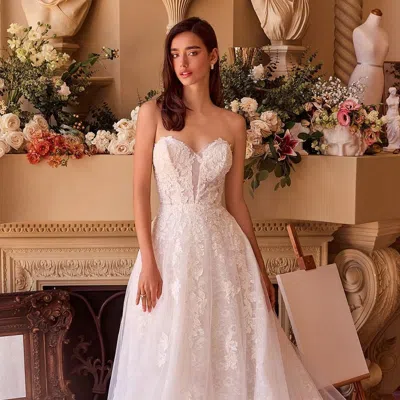 Cinderella Divine Wl082 Short Bridal A Line Floral Applique Wedding Dress In Multi