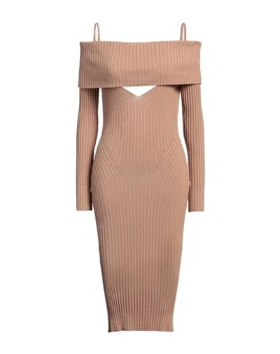 Andreādamo Woman Midi Dress Camel Size S Viscose, Polyester, Polyamide, Elastane In Beige