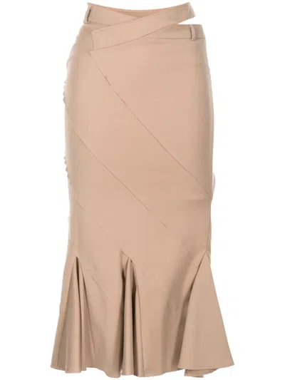 Gathered-detail Asymmetric-hem Skirt In Neutrals