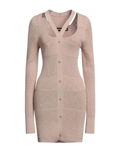 Andreādamo Woman Mini Dress Beige Size S/m Viscose, Polyester, Polyamide, Elastane