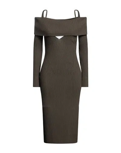 Andreādamo Woman Midi Dress Brown Size M Viscose, Polyester, Polyamide, Elastane